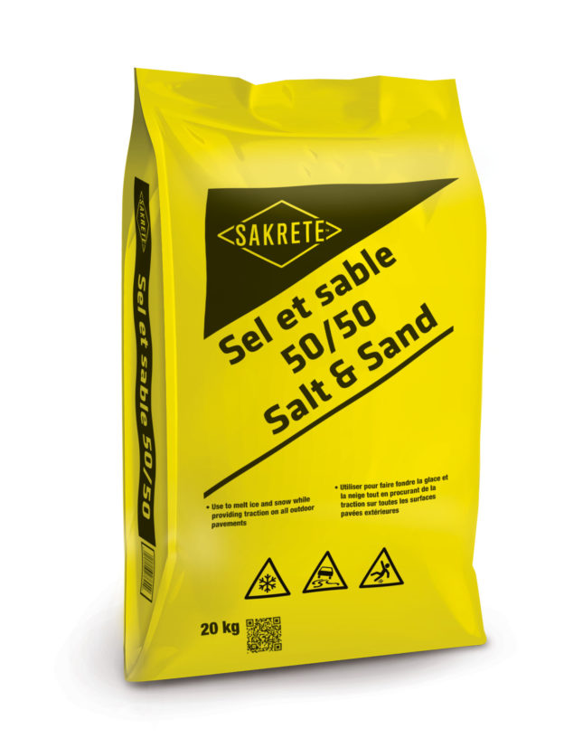 Fait fondre la glace et la neige tout en procurant de la traction! Utilisez le SAKRETE 50/50 Sel et sable, un mélange de sel à déglacer et de sable tout usage. Offert en sacs de 20 kg. Optez pour SAKRETE, le choix des professionnels depuis 1936.